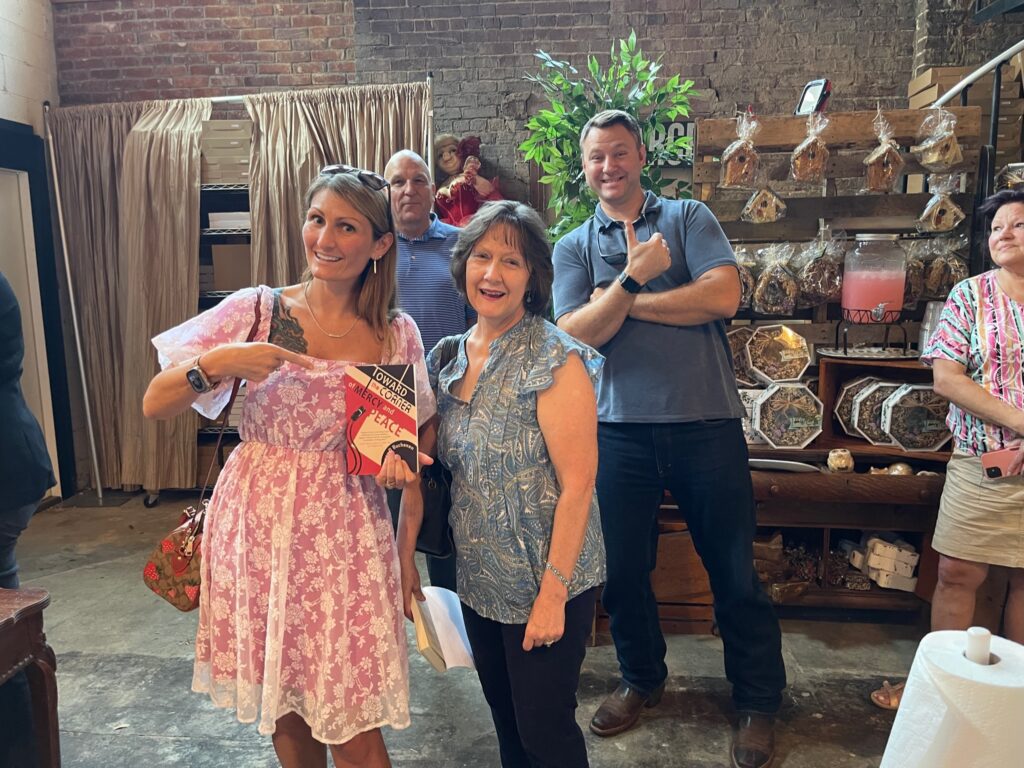 It’s a few days later but I’m still reeling from the fantastic book launch party we had at BBQ & More! So many folks came to help me celebrate the release of Toward the Corner of Mercy and Peace. I was thrilled! We ran out of books, but more are on the way. My publisher had to do a second press run! Yay!